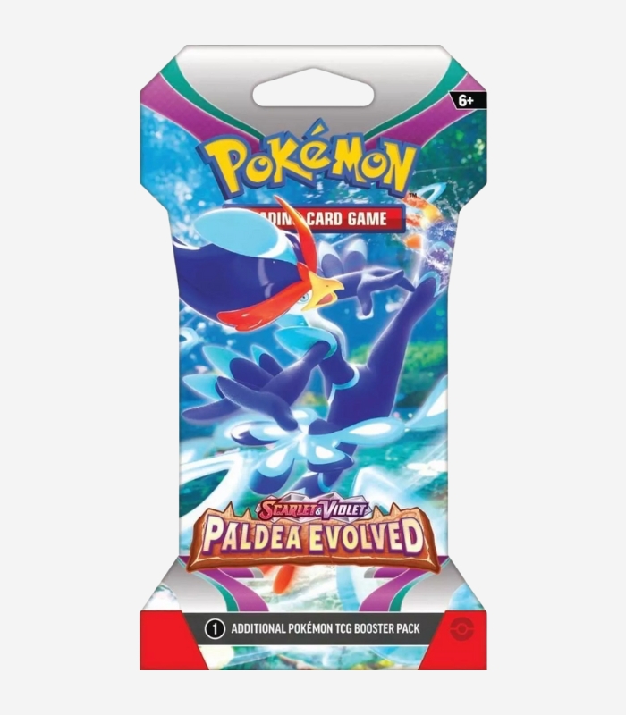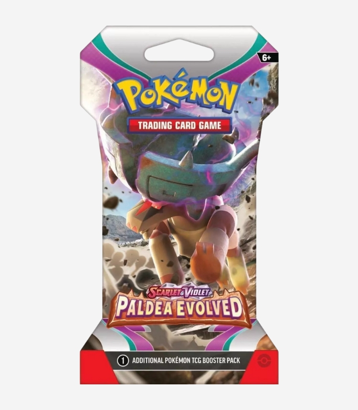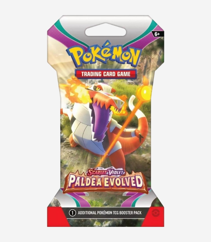 xplore the Scarlet & Violet Paldea Evolved expansion with the Pokémon TCG Paldea Evolved Sleeved Booster Pack English Edition. Each booster pack contains 10 cards, including Pokémon, Trainer, and Basic Energy cards, all pre-sleeved to protect your pulls and ensure they remain in mint condition.