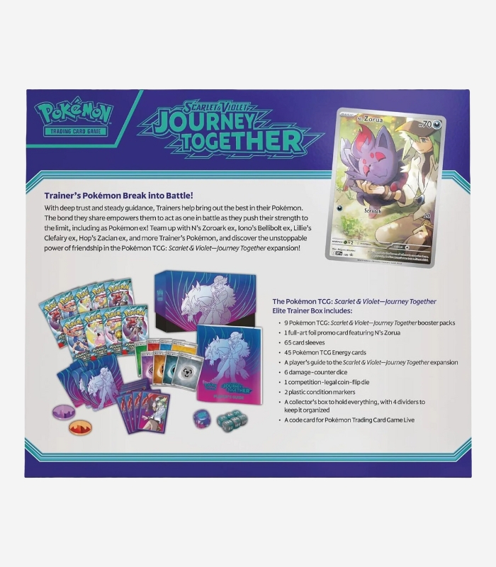 Celebrate the adventures of Scarlet and Violet with the Pokémon Journey Together Elite Trainer Box English Edition. Designed for collectors and players, this Elite Trainer Box provides everything needed to explore the Journey Together expansion, build competitive decks, and enhance your Pokémon TCG collection.