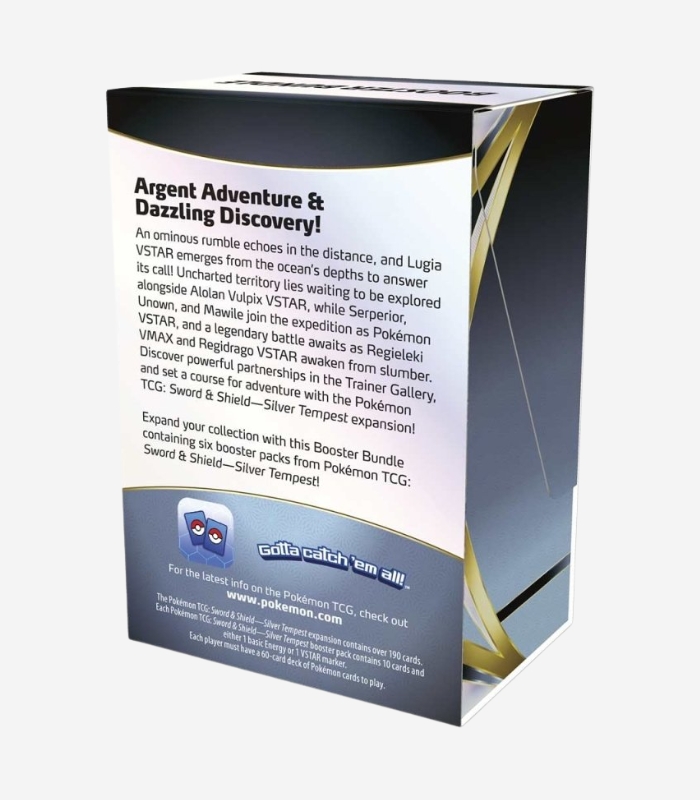 Dive into the world of Pokémon Silver Tempest and experience the excitement of new storms and legendary battles! This exclusive booster bundle contains 6 Silver Tempest booster packs, each packed with 10 random cards, including Common, Uncommon, Rare, VSTAR, and potentially Ultra Rare Pokémon.